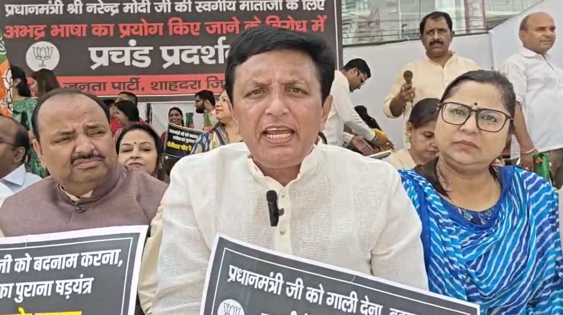 प्रधानमंत्री नरेंद्र मोदी की मां के खिलाफ की गई आपत्तिजनक टिप्पणी को लेकर दिल्ली में भारतीय जनता पार्टी ने कांग्रेस के खिलाफ कड़ा विरोध जताया। शाहदरा जिला भाजपा इकाई ने सोमवार को निर्माण विहार मेट्रो स्टेशन पर जोरदार धरना-प्रदर्शन किया। इस विरोध प्रदर्शन का नेतृत्व जिला भाजपा अध्यक्ष दीपक गाबा ने किया, जिसमें स्थानीय विधायक, पार्षद, मंडल अध्यक्षों समेत बड़ी संख्या में कार्यकर्ता शामिल हुए।