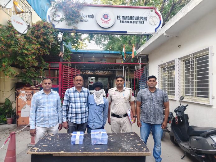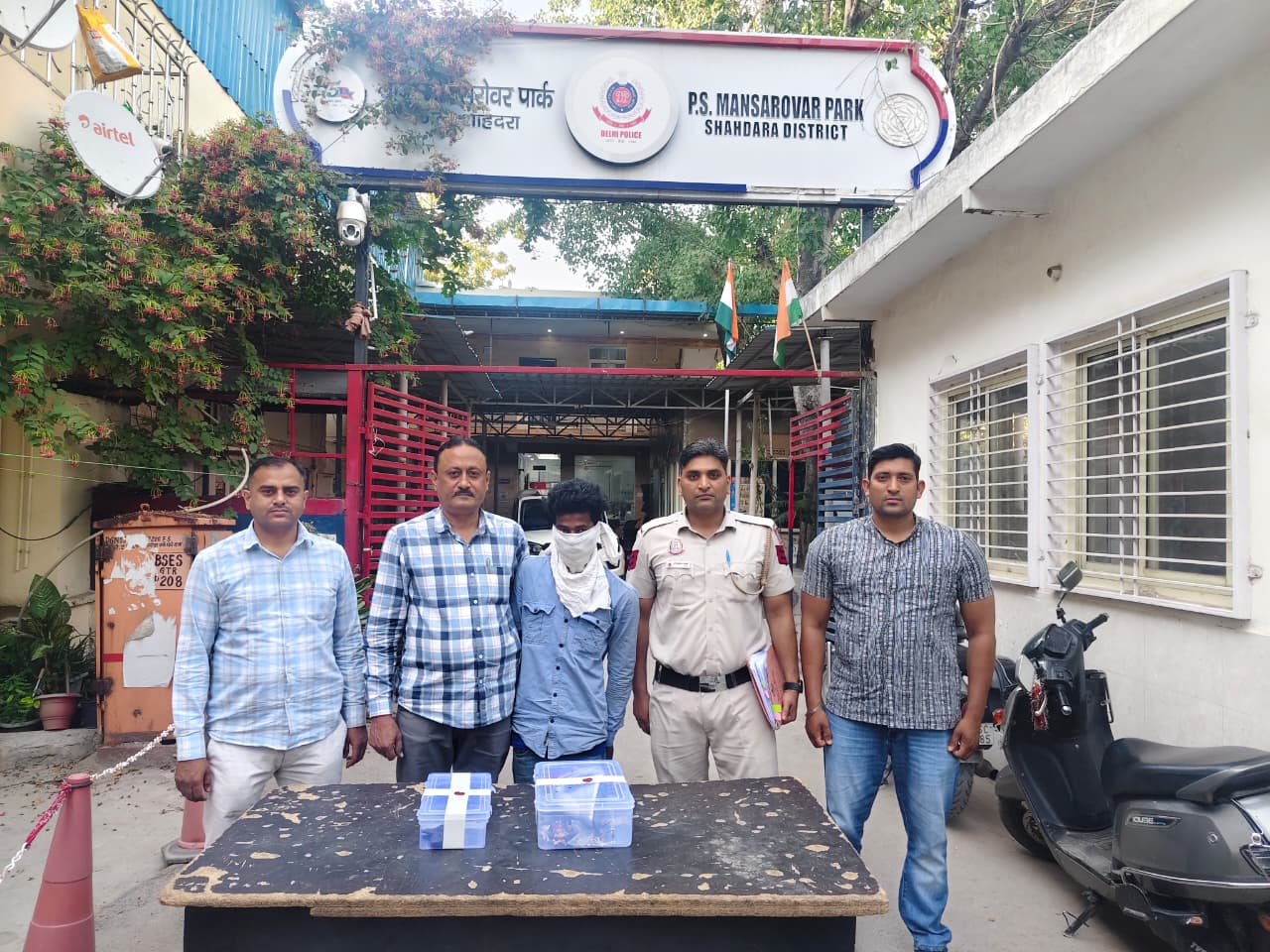 दिल्ली के शाहदरा जिले में MS पार्क थाना पुलिस ने तेज कार्रवाई करते हुए एक दिनदहाड़े घर में सेंधमारी के मामले को मात्र 4 घंटे में सुलझा लिया। पुलिस ने इस मामले में कुख्यात अपराधी शाकिल इरफान उर्फ इरफान उर्फ नाटा को गिरफ्तार किया है, जो पहले से ही 21 चोरी और घर में सेंधमारी के मामलों में शामिल रहा है। पुलिस ने उसके कब्जे से चोरी किया गया सोना, चांदी और अन्य कीमती सामान भी बरामद कर लिया है।