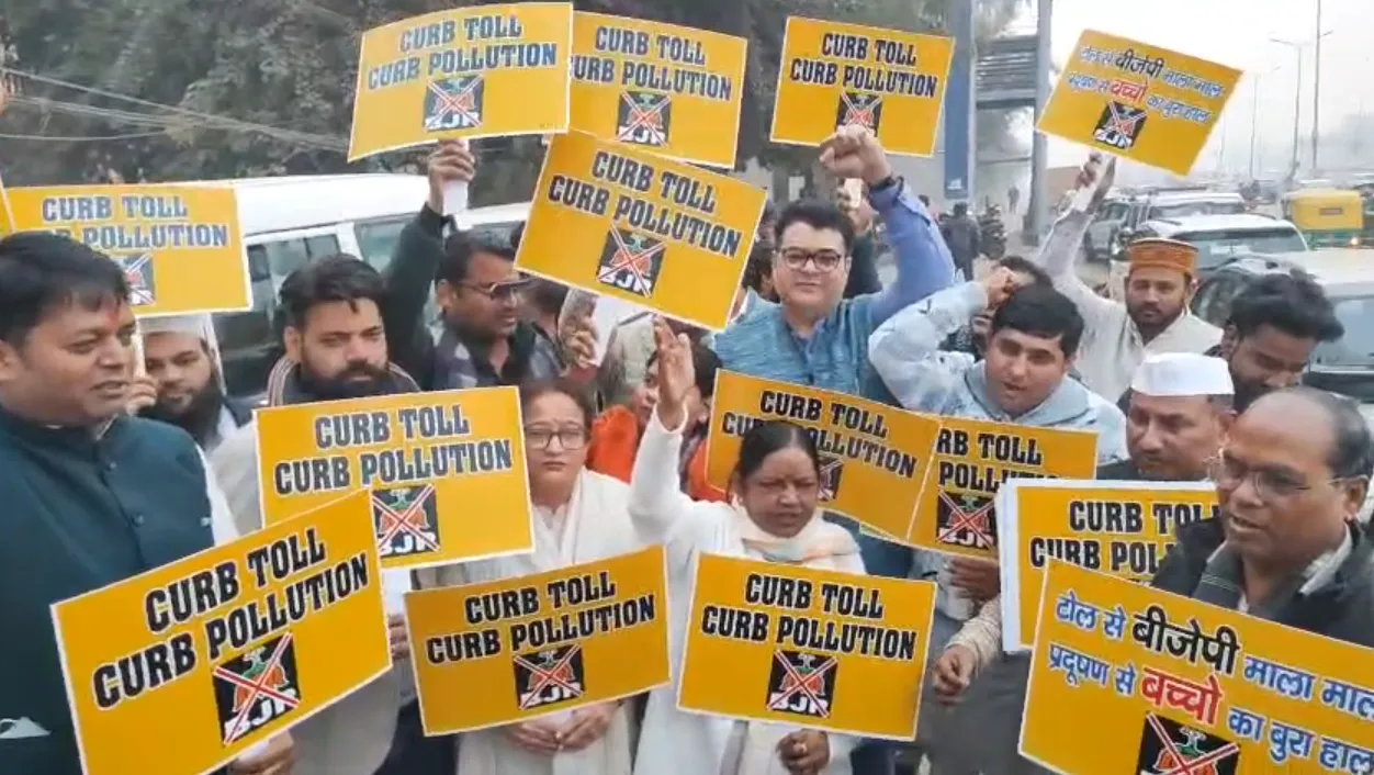 Delhi pollution: दिल्ली प्रदूषण के खिलाफ गाजीपुर टोल पर AAP का जोरदार प्रदर्शन, टोल टैक्स बंद करने की मांग