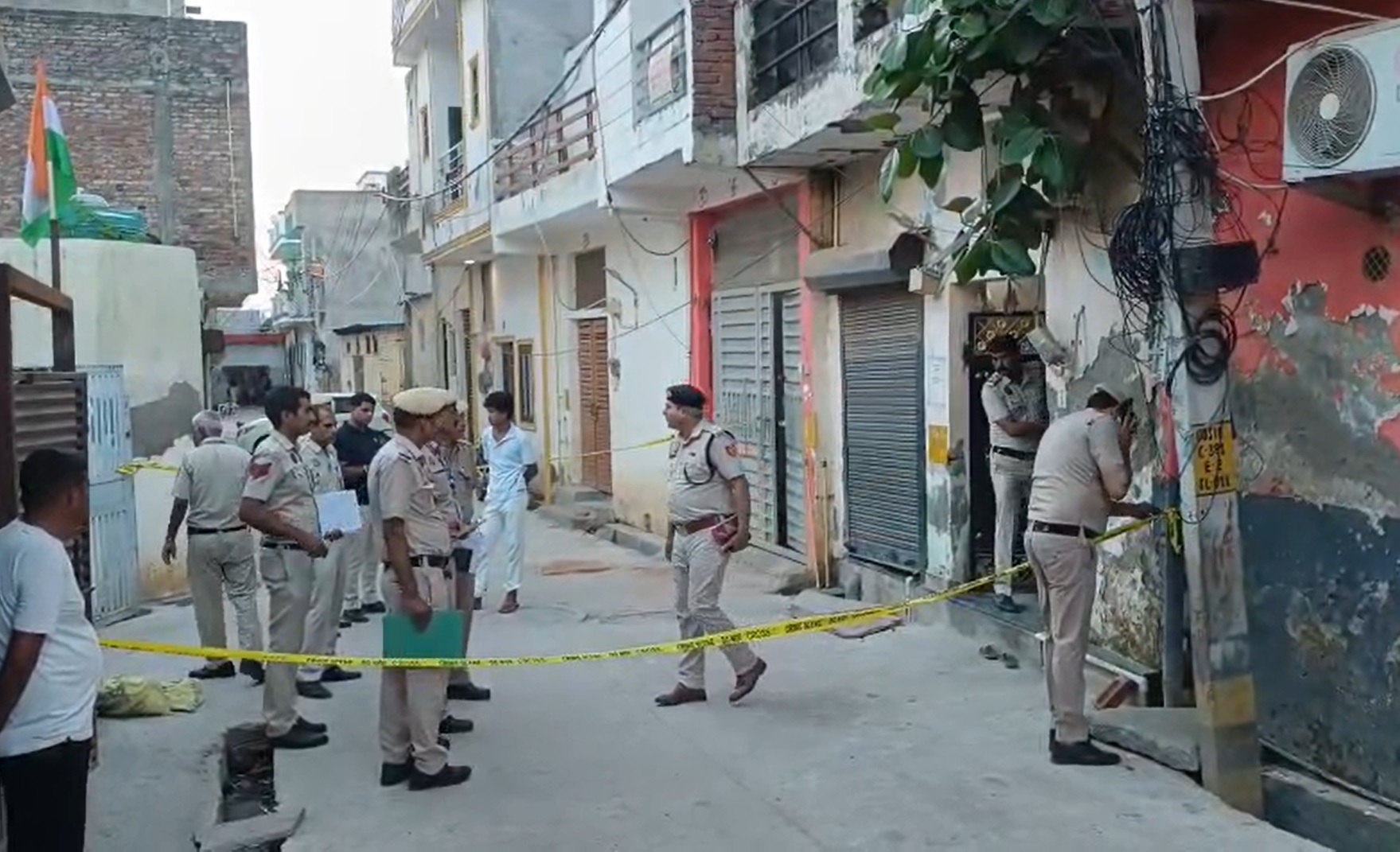 घटना की जानकारी मिलने के बाद डीसीपी अंकित चौहान ने बताया कि पीसीआर कॉल पर “कॉलर ने बताया कि एक लड़के ने अपना हाथ काट लिया है और घर में बहुत खून है, मदद की जरूरत है।” इसके तुरंत बाद मैदानगढ़ी थाना की पुलिस टीम घटनास्थल पर पहुंची। ग्राउंड फ्लोर पर पिता और बड़े बेटे के खून से लथपथ शव मिले, जबकि पहली मंजिल पर मां का शव पड़ा था।
