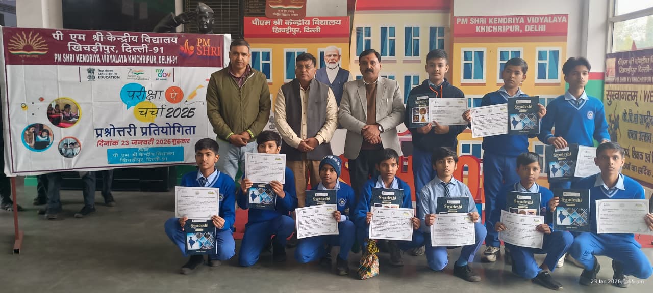 दिल्ली, 23 जनवरी 2026: पीएम श्री केन्द्रीय विद्यालय खिचड़ीपुर में परीक्षा पे चर्चा–2026 के अंतर्गत ‘ऑपरेशन सिंदूर’ विषय पर एक भव्य प्रश्नोत्तरी प्रतियोगिता का सफलतापूर्वक आयोजन किया गया। इस शैक्षणिक आयोजन का उद्देश्य विद्यार्थियों में समसामयिक विषयों के प्रति जागरूकता बढ़ाना, तार्किक सोच को विकसित करना और स्वस्थ प्रतिस्पर्धा की भावना को प्रोत्साहित करना रहा। कार्यक्रम में विद्यार्थियों ने उत्साह और आत्मविश्वास के साथ भाग लिया।