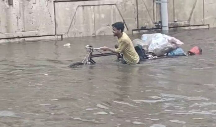 दिल्ली में बाढ़ का खतरा लगातार मंडरा रहा है और इसी बीच सोमवार को हुई महज़ दो घंटे की बारिश ने राजधानी की पोल खोल दी। पूर्वी दिल्ली के NH 24 पटपड़गंज इलाके में हालात इतने बिगड़ गए कि सड़कों पर घुटनों से लेकर कमर तक पानी भर गया। जलभराव का आलम यह रहा कि जहां बड़ी बसें पानी में फंस गईं वहीं छोटी गाड़ियां लगभग डूब सी गईं।